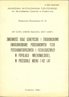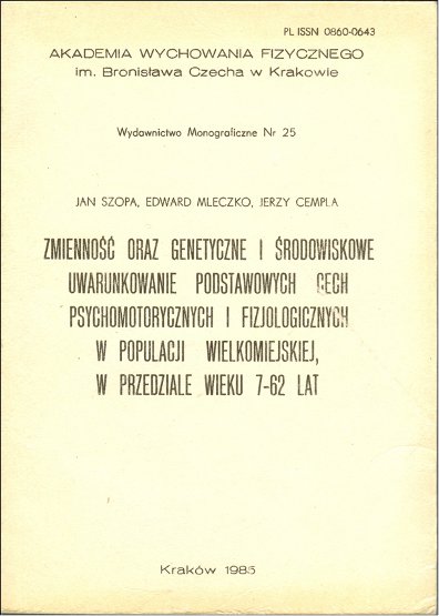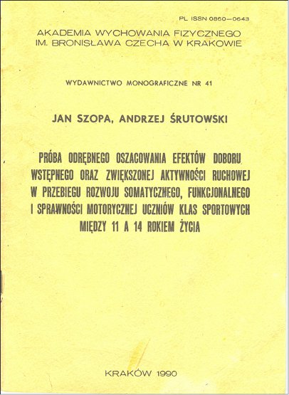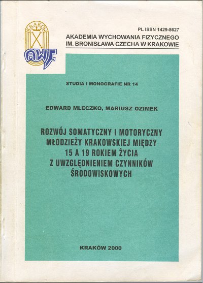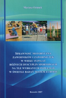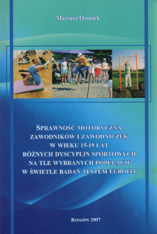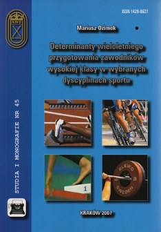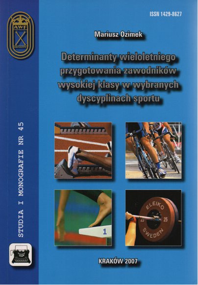 Autor: Ozimek, Mariusz Tytuł: Determinanty wieloletniego przygotowania zawodników wysokiej klasy w wybranych dyscyplinach sportu. - Kraków : AWF , 2007 - 321 s. : il., err. ; 24 cm -(Studia i Monografie / Akademia Wychowania Fizycznego im. Bronisława Czecha w Krakowie, ISSN 1429-8627 ; nr 45) - Summ. - Bibliogr. s. 259-282 - ISBN 978-83-89121-43-1