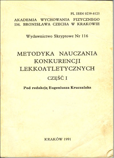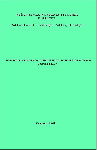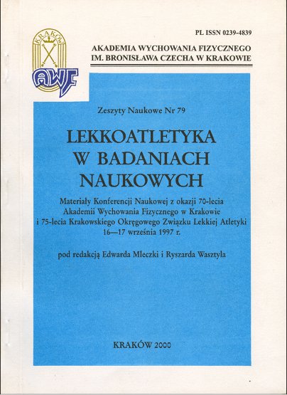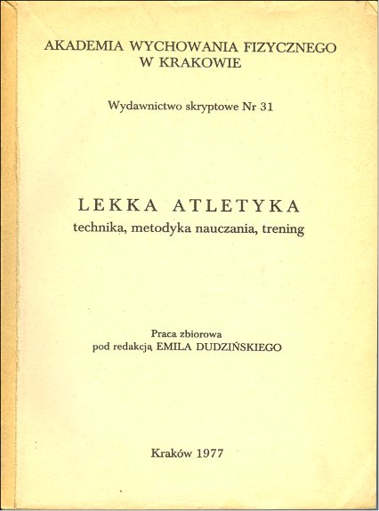 Autor: Mleczko, Edward Red. Tytuł: Lekkoatletyka. - Kraków : AWF, 2007 - 230 s. : il. ; 29 cm-(Podręczniki i Skrypty / Akademia Wychowania Fizycznego im. Bronisława Czecha w Krakowiex1429-8635vnr 30 ) - Bibliogr. 4 poz. - ISBN 9788389121585