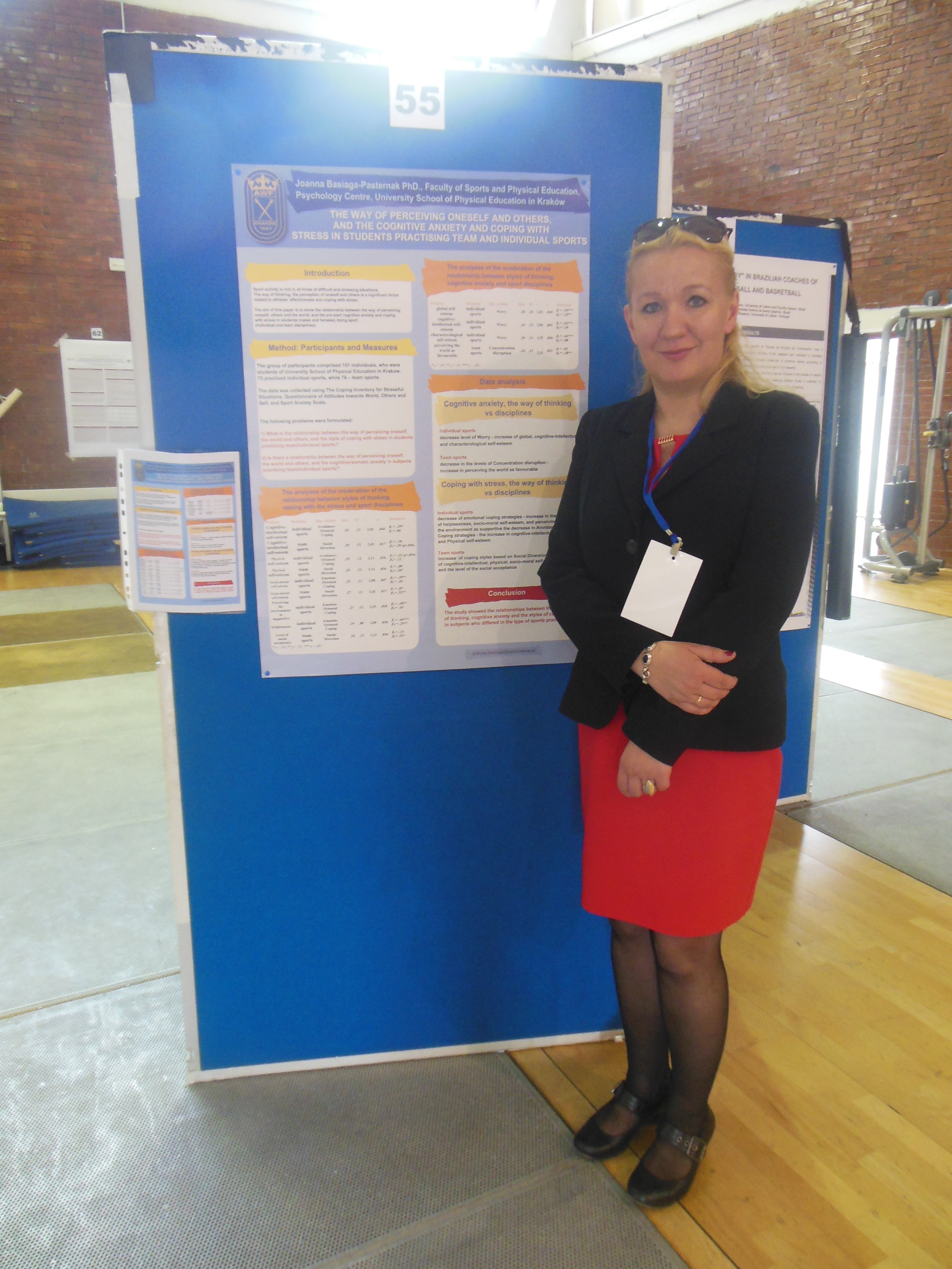 13. IV Konferencja Praktyczna Psychologia Sportu, Instytut Psychologii Uniwersytet Gdańskie, Zakład Psychologii Akademii Wychowania Fizycznego w Krakowie, Gdańsk 19-20.05.2016. Basiaga-Pasternak J., 2016, Zależności pomiędzy stylem myślenia a lękiem poznawczym i stylem radzenia sobie ze stresem u studentów uprawiających sport.